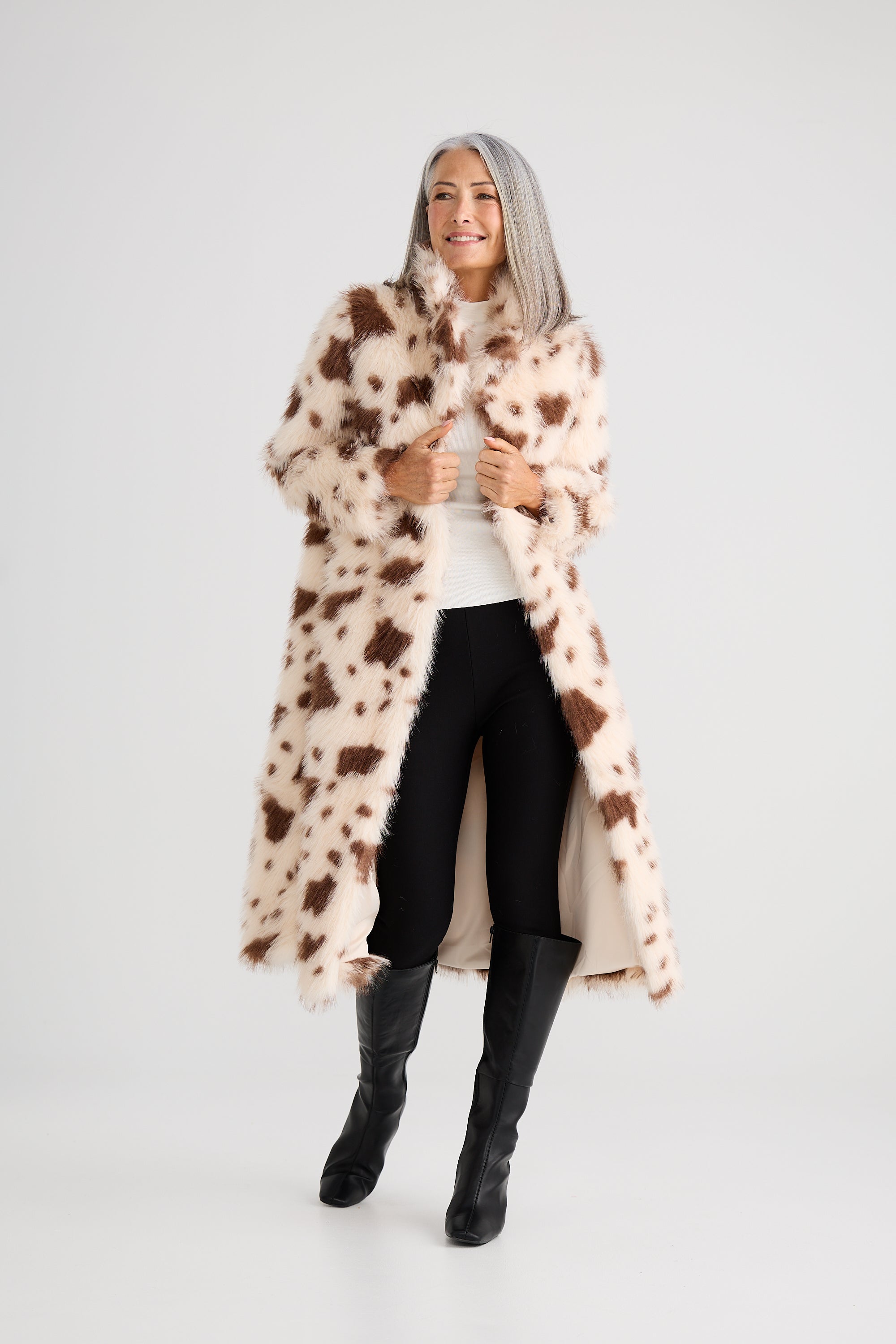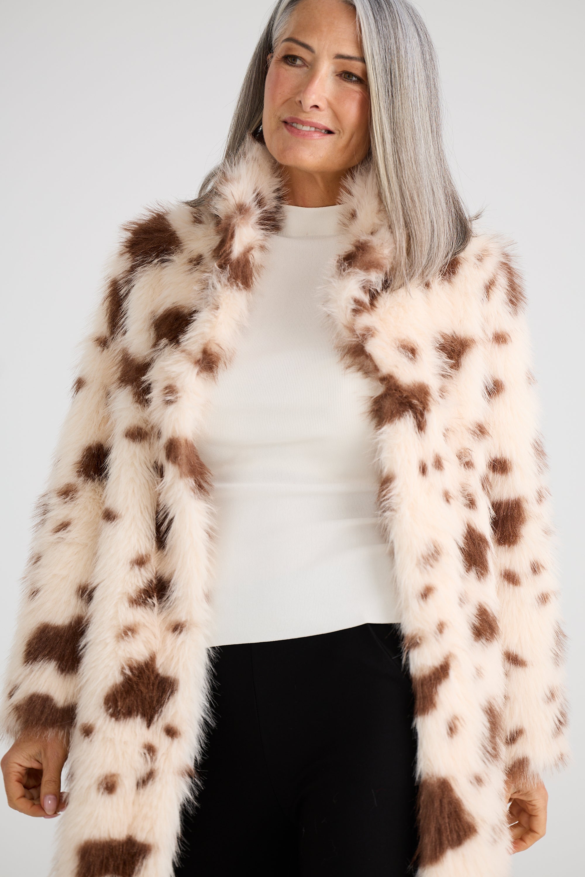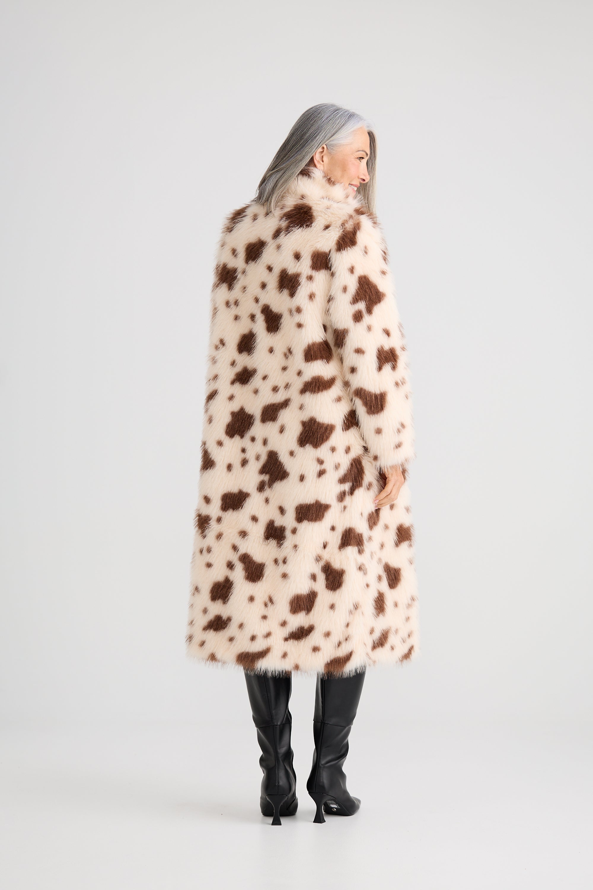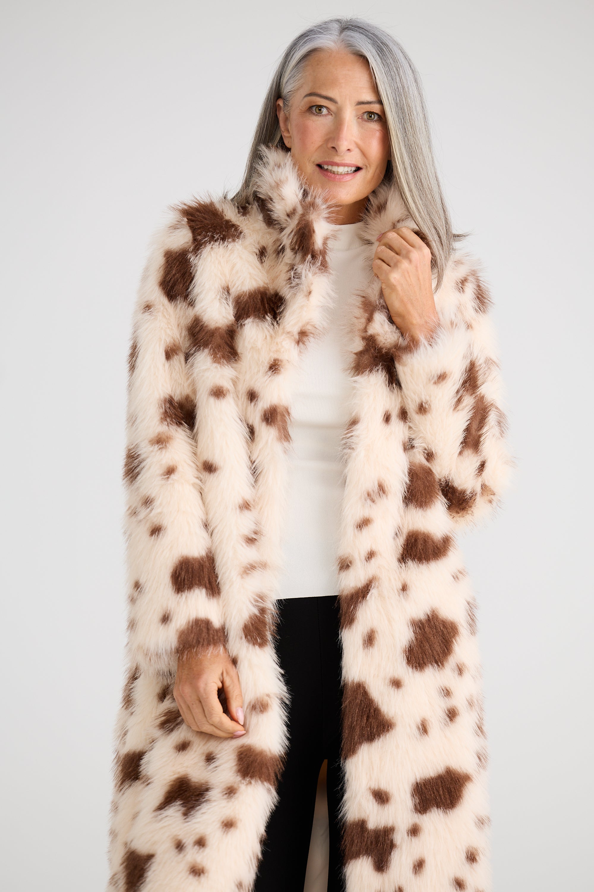 "Long faux fur coat